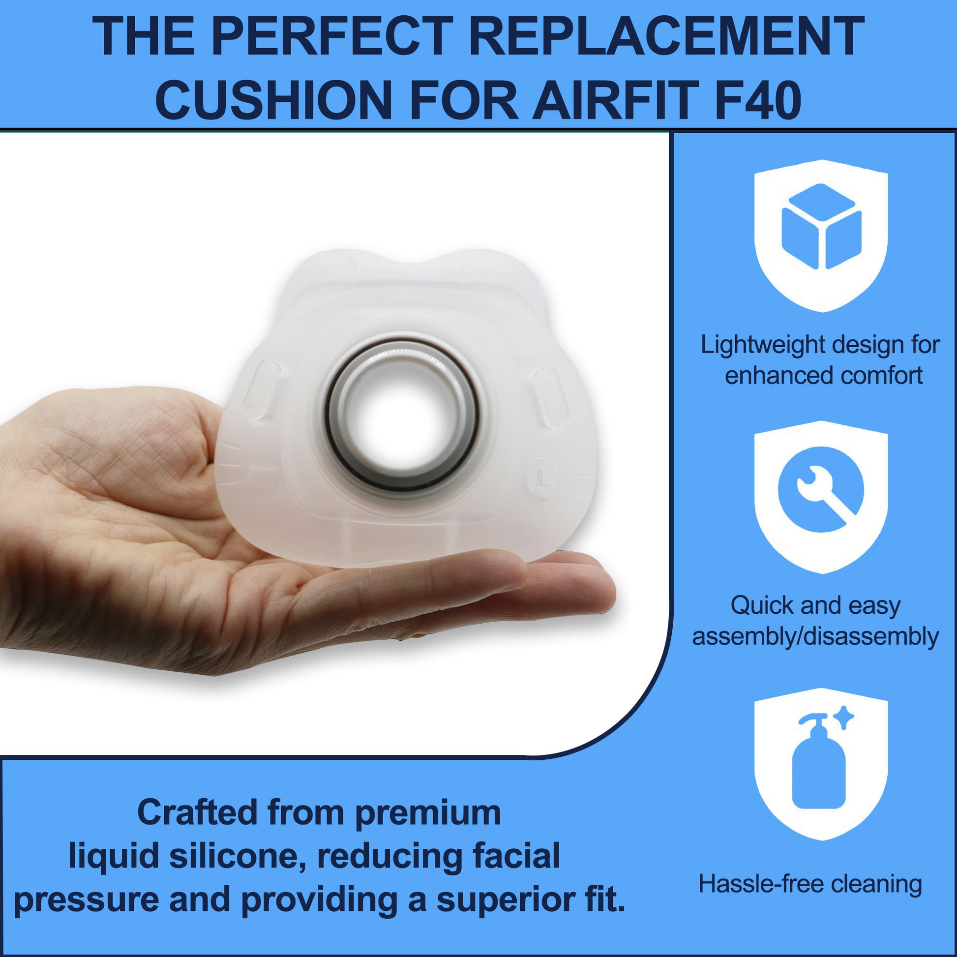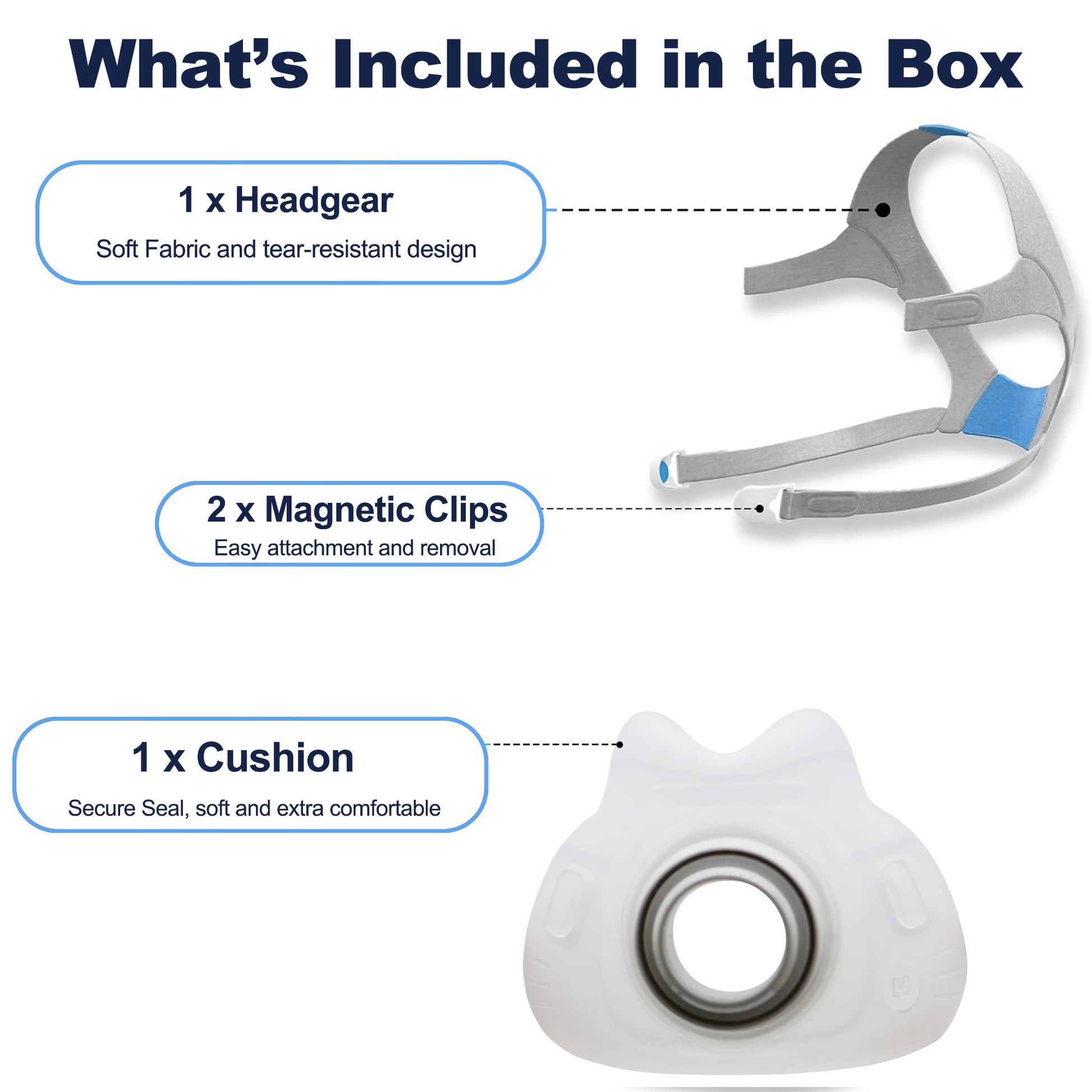 - WHAT’S INCLUDED – 1 AirFit F40 Cushion and 1 Headgear Strap (with magnetic clips).